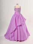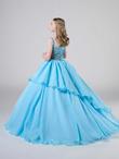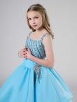 The asymmetrical skirt is a perfect compliment to the lines of the delicately beaded bodice.