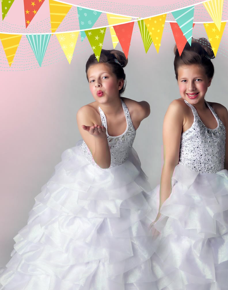 Discover the Girls Floor Length Pageant Gown by MAC DUGGAL, an exquisite choice for formal occasions. This gown features a halter neckline and a fitted bodice adorned with shimmering beads and rhinestones. The white color and patterned design add vibrant elegance, while a ruffled ball gown skirt enhances the overall majestic look. Crafted with attention to detail, this gown is a stunning addition to any young girl's wardrobe.