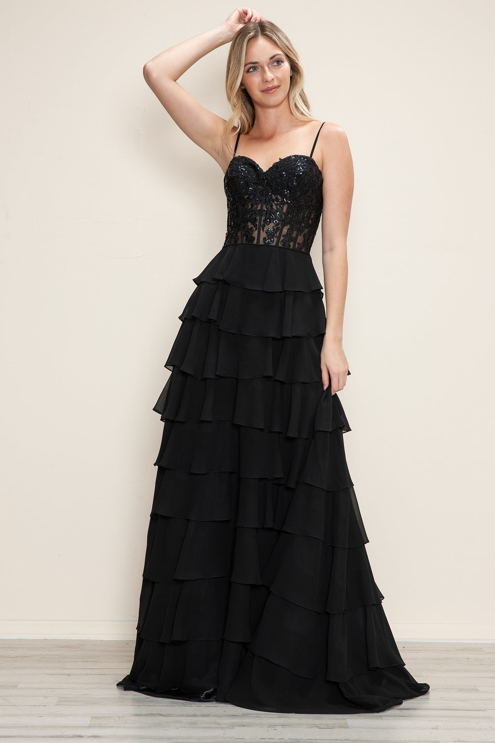 Chiffon with Top Embroidery and Ruffle skirt