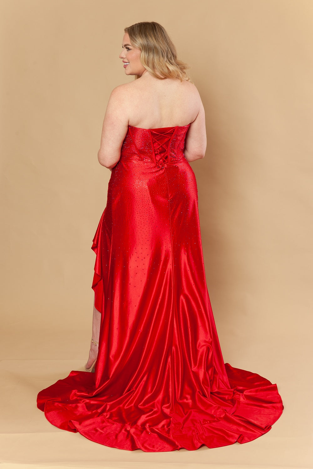 Fitted Poly Span Satin with Rhinestone